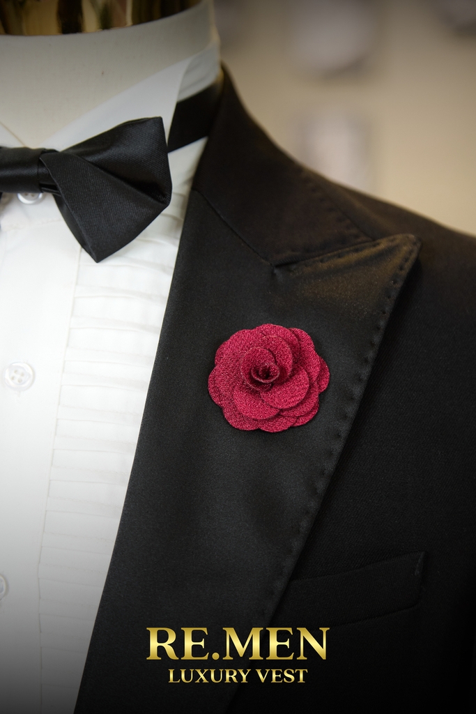 Ghim cài áo vest hoa đỏ đô – lựa chọn của quý ông yêu thích sự trầm ổn nhưng không muốn mờ nhạt. Khi bạn cần một phụ kiện nói thay cá tính, hãy để hoa đỏ đô lên tiếng.