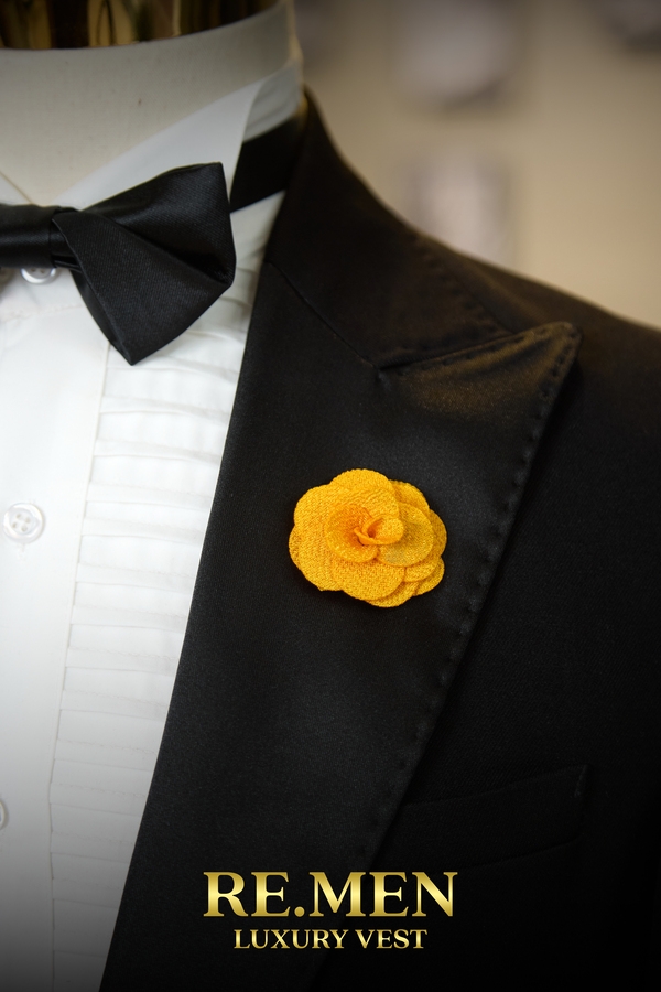 Màu vàng luôn mang trong mình sự ấm áp, tươi sáng và rạng rỡ. Khi xuất hiện trên chiếc ghim cài, bông hoa nhỏ trở thành lời chào nhẹ nhàng nhưng đầy thu hút – như cách một quý ông tinh tế bước vào khung hình của buổi tiệc.