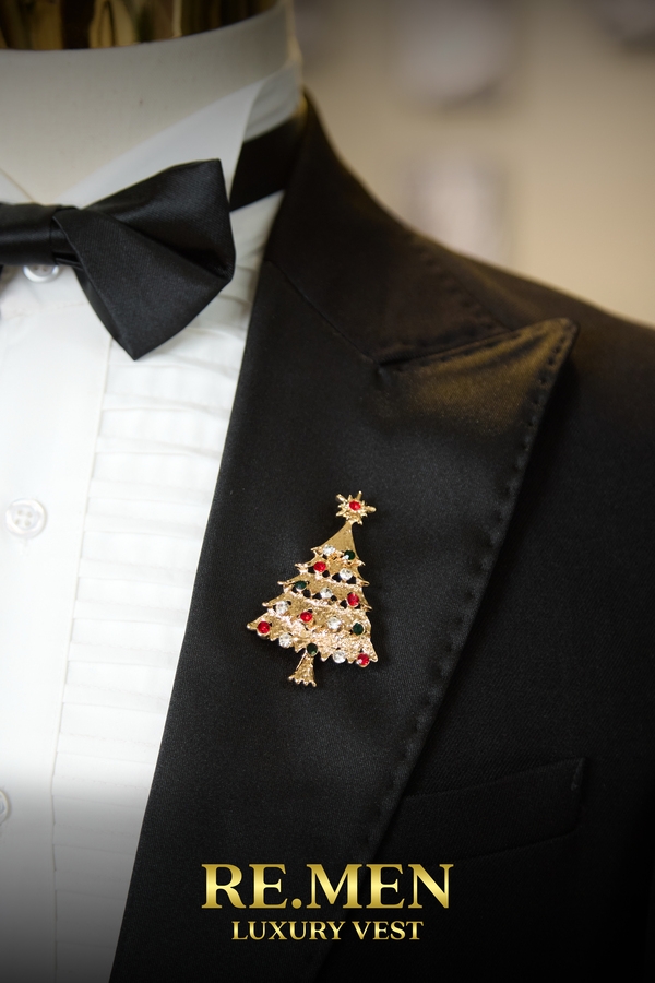 Ghim cài áo vest cây thông vàng RE.MEN – Biểu tượng mùa lễ hội đầy phong cách