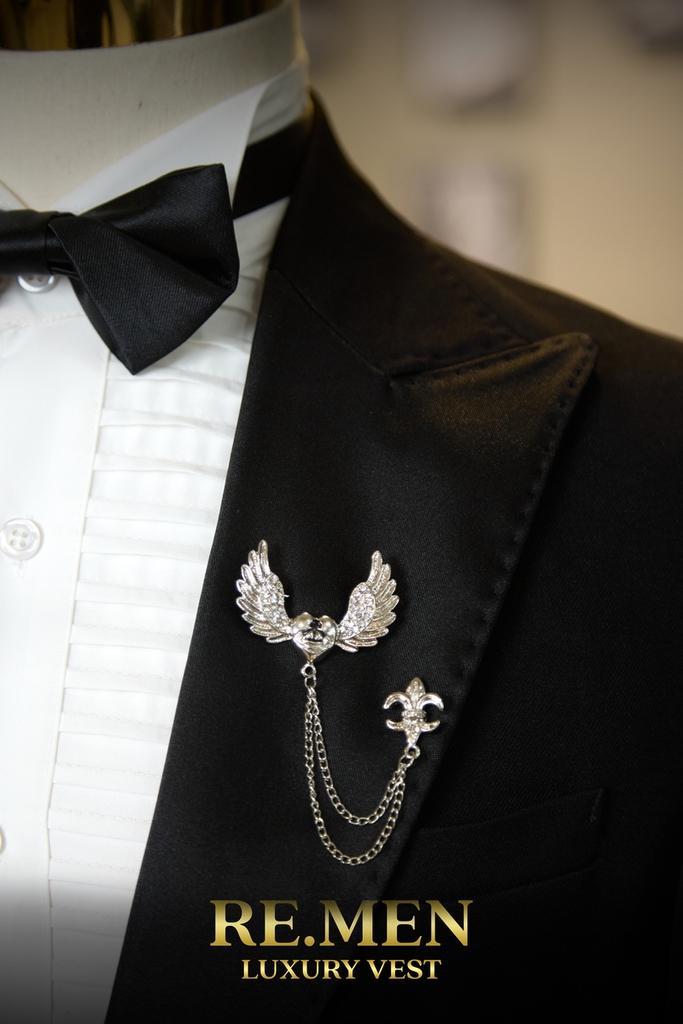 Ghim cài áo vest trái tim cánh bạc RE.MEN – Biểu tượng tình yêu đầy tinh tế