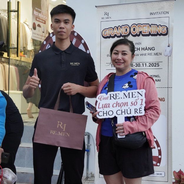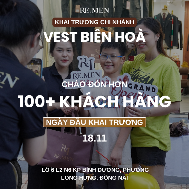 Sự kiện khai trương RE.MEN Biên Hòa là cột mốc quan trọng trong hành trình mở rộng thương hiệu, đồng thời là lời tri ân gửi đến những quý ông yêu thích phong cách lịch lãm và chỉn chu. RE.MEN tin rằng, mỗi bộ vest được chọn không chỉ là trang phục, mà là một phần phong độ và câu chuyện riêng của người mặc.