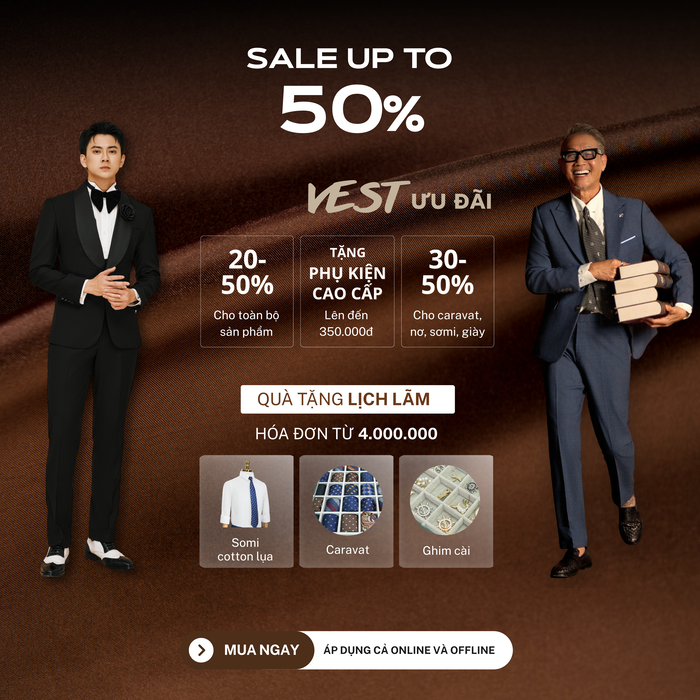 ▪️ Giảm 20% đến 50% khi mua bất kỳ bộ vest nào.