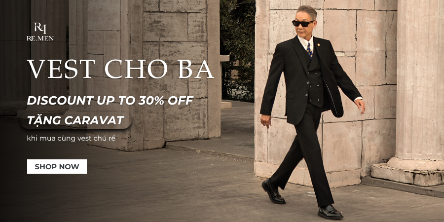 Ưu đãi đến hết 30/11: Giảm 30% vest trung niên + Tặng caravat khi mua cùng vest chú rể.